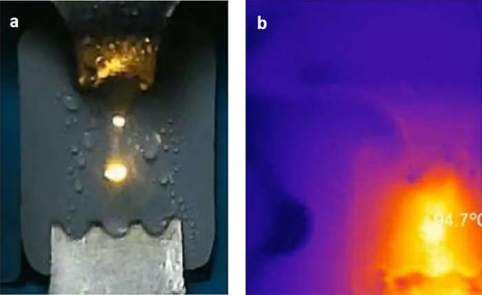 To monitor surface discharges during testing, the μ-IPT system integrated both a visible-light camera and a portable thermal camera. The visible camera was operated via OpenCV in Python, enabling frame capture and image processing in real time. The thermal camera was interfaced using AutoHotkey scripts triggered from Python, allowing synchronized thermal imaging of discharge activity. Together, the imaging system provided complementary visual and thermal diagnostics of the degradation process.