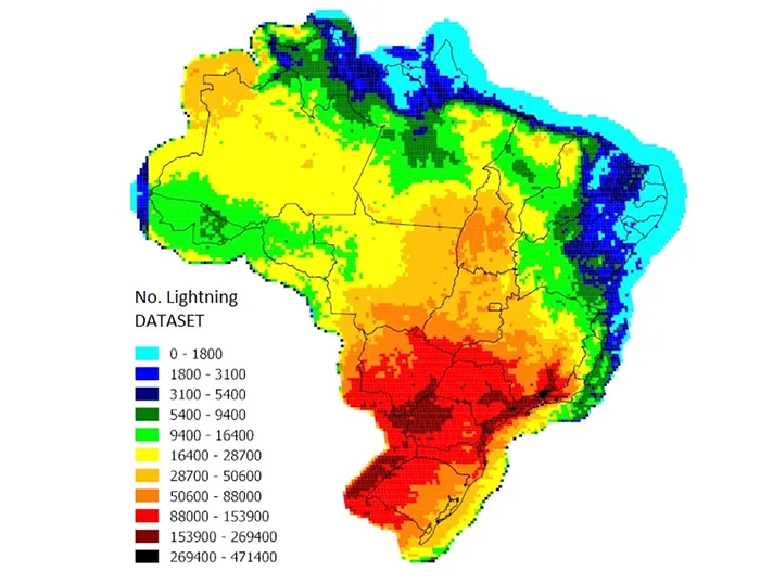 Both configurations exhibit effective shielding against direct lightning, with zero shielding failures. However, the insulated cross-arm configuration demonstrates better performance with regards to outages caused by atmospheric discharges, with a 26% lower rate. This improvement highlights the increased protection offered by more compact geometry and better electromagnetic coupling between conductors and shield wires. It should be noted that Brazil experiences a relatively high lightning strike density (see Fig. 6).
