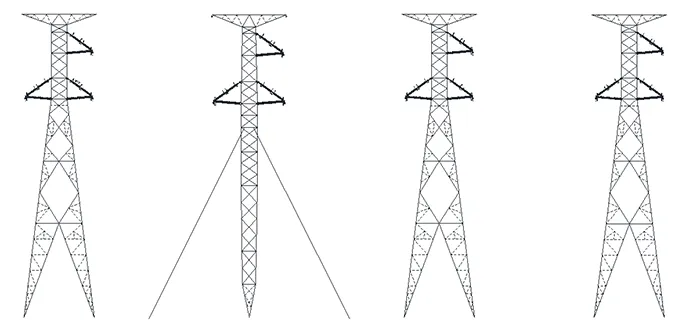 Four tower types based on using insulated cross-arms were developed, each corresponding to a specific application within the line. Together, these would account for 308 of the project‘s 361 structures. To allow fair comparison between alternative solutions, the same tower allocation, mechanical loads and electrical insulation coordination used in the original design were maintained.
