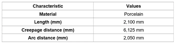 Insulator characteristics were established in accordance with requirements in ABNT NBR-6939 (Brazil’s Insulation Coordination Standard), summarized in Table 2