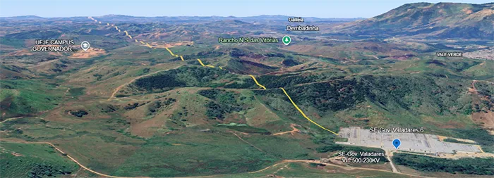 The new transmission line will connect SE Governador Valadares 6 and SE Verona Substations, across an area characterized mostly by mountainous terrain (see Fig. 3). The proposed line has a total length of 168 km and consist of 361 towers. It will operate at a nominal voltage of 230 kV and nominal current of 930 A, corresponding to a power rating of 370 MVA. The line uses CAL 1120 conductors with a cross-sectional area of 1.158 kcmil, arranged in a three-phase, single-circuit configuration.