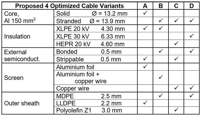 After analysis of the many available MV cable designs, 4 optimized cable construction variants were proposed. Unfortunately, response to this proposal across different countries was initially not positive. As a result, most different cable types and accessories are still being applied over this voltage range, whether using heat shrink, slip-on or cold shrink technologies.