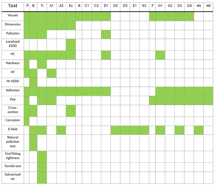 Based on these findings, the report also proposes the concept of a basic test matrix that aims to reduce number of tests while still being effective in identifying poor quality insulators. This matrix, which also allows more efficient maintenance planning, consists of: