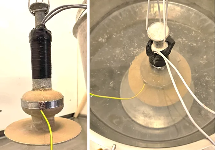 Test specimens are approximately 30 mm in length, consisting of both core and housing, including a single shed. The water diffusion test involves 100h of boiling (pre-stressing), followed by a voltage test with current measurement and concludes with a mechanical pull-off test (as shown in Fig. 13).