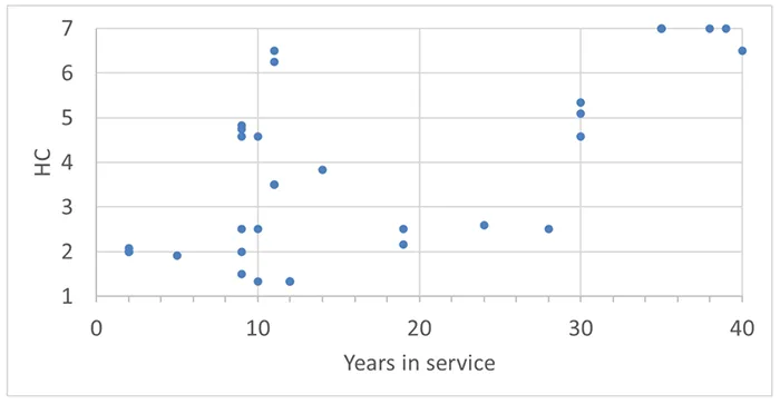 • Different time in service (up to 42 years with the oldest having up to 55 years’ service);