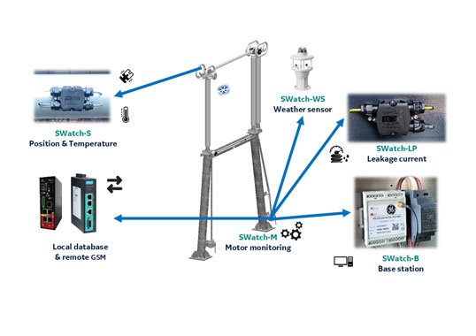 Fig. 11 shows the AIS Disconnector full kit typical installation. This product enables condition-based maintenance via alerts collecting in real-time data about leakage current above insulators, live part position and temperature, while also tracking motor activity such as current, voltage, and movement count. Data is delivered to utilities through a web interface using GMS for status and operational monitoring. In addition, it could be integrated in the substation SCADA system via the most common protocol (Modbus, IEC 61850 or DNP3).
