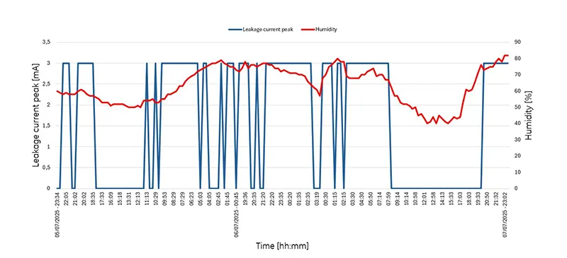 Simultaneously, the data is continuously being checked by a dedicated algorithm to detect situations that might require utility attention. If thresholds are exceeded, the system issues alarms either locally or remotely. The time interval between the alert and the onset of a hazardous condition is generally sufficient for personnel to plan and carry out necessary interventions on site, including maintenance such as insulator cleaning.