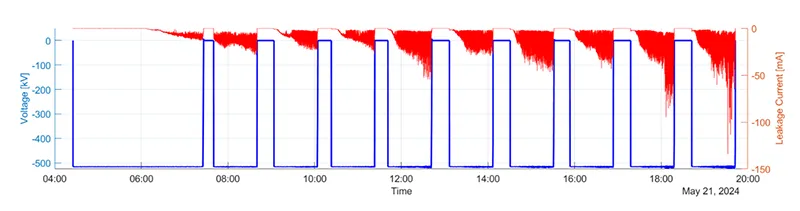 In summary, similar withstand criteria to those for porcelain insulators could be applied to HTM insulators if looking only to the aspect of flashover. However, composite insulators pose challenges given that even low-level leakage currents can reduce performance by degrading hydrophobicity and damaging surfaces. Therefore, diagnostic criteria for HTM insulators will differ. Specifically, it is important to ensure leakage current stays below a few milliamperes to minimize ageing and intervention should be undertaken if an upward trend is observed.