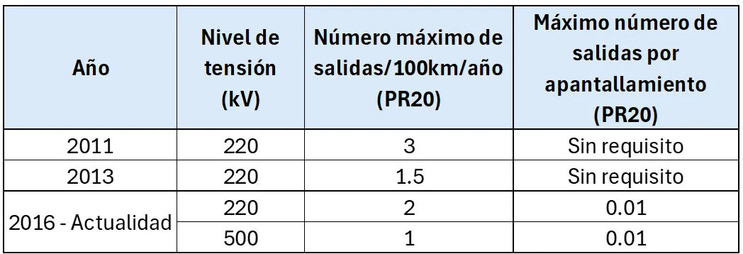 Cabe anotar que el requerimiento de gradiente de distancia de fuga según el nivel altitudinal se incluyó como parte de los requisitos en el PR-20 a partir del año 2016, aplicando para líneas de extra alta tensión por primera vez en el proyecto Mantaro – Montalvo 500 kV, primera línea de 500 kV en altura de Latinoamérica, lo cual implicó un ajuste en los valores de cumplimiento que se venían trabajando desde el 2011 en proyectos de 220 kV en Perú.