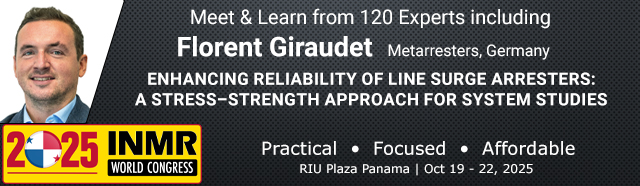 Plan to participate at the upcoming 2025 INMR WORLD CONGRESS in Panama. Arrester expert, Florent Giraudet, will propose a reliability framework based on the stress–strength interference model, where failure occurs when actual electrical or environmental stress exceeds an arrester’s tested or expected strength. He will also discuss how, where applicable, this model can be refined over time using condition-based indicators, such as resistive leakage current or thermal diagnostics, particularly in substations where critical equipment is protected by station-class arresters. The objective of his technical lecture will be to apply this reliability framework to line surge arresters, with particular focus on externally gapped line arresters (EGLAs).