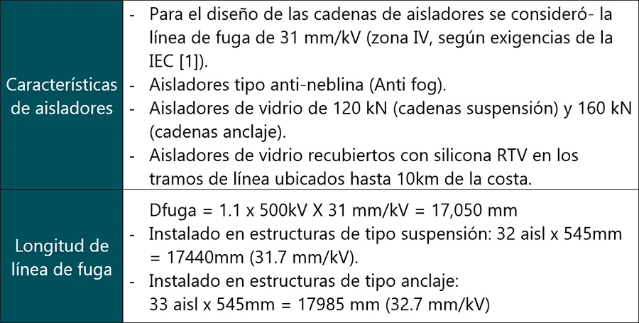 Debido a ello se procedió a ejecutar reemplazo de aisladores de vidrio por aisladores de vidrio recubiertos con goma de silicona en los tramos ubicados a menos de 10 km del mar peruano; adicionalmente, se realizó actividades de mantenimiento como: inspección de efluvios, limpieza manual de cadenas y se realizaron investigaciones acerca del polvo existente en el medio.