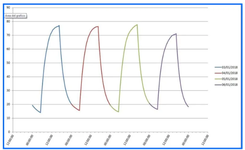 The first test condition simulated the behavior of cables laid underground and operated during dry and hot periods. This test was aimed at understanding the behavior and possible degradation of joints and cables under heating and cooling cycles where the soil has very low content of humidity. Daily cycles of temperature were applied to cable rings, by means of circulation of a current simulating real service conditions.