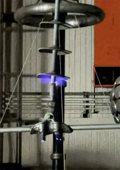 When ambient temperature rises to between -2°C and 0°C, a thin film of highly conductive water forms on the surface of the ice and icicles. The conductivity of this film is often elevated because impurities from pre-existing surface contamination or atmospheric pollutants captured by the precipitation that is expelled from the ice lattice as it melts become concentrated in the liquid water layer. This contaminated and conductive water film facilitates current flow across iced sections, causing full system voltage to be dropped across the remaining air gaps. This leads to initiation of powerful local arcs within these gaps. These arcs can then propagate along the conductive, melting ice surface, potentially elongating to bridge the entire insulator and cause complete flashover, often at a fraction of an insulator’s nominal withstand voltage.