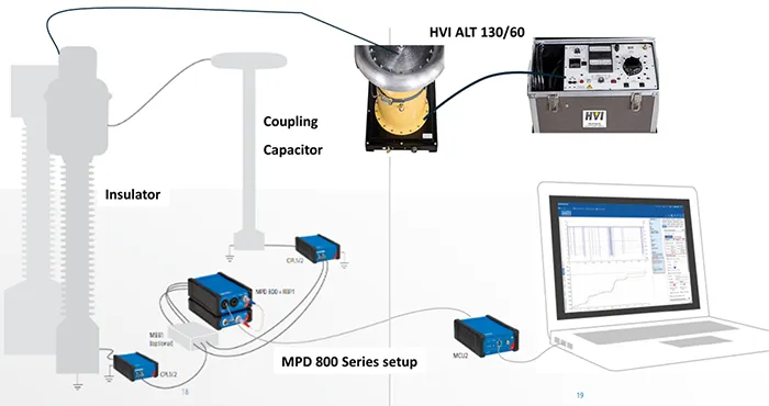 6. Omicron MPD device to capture Phase Resolved Partial Discharge plots (PRPDs).