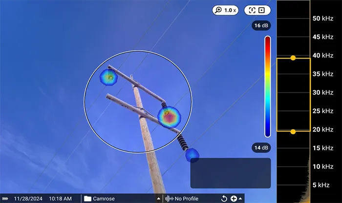 At each reading, proprietary ultrasonic and RF sensors were used to predict if the transmission structure was producing corona, surface discharge, or neither.