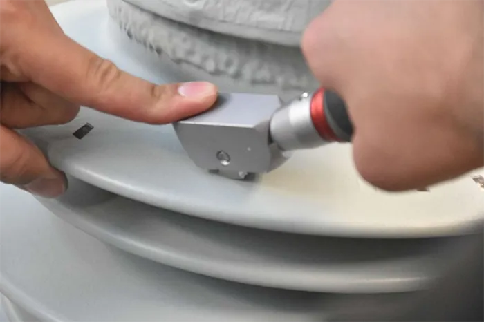The pressure cycle takes several minutes and sees pressure increased up to 1050 bars. Afterwards, the body is a solid machinable ceramic cylinder, ready for turning.