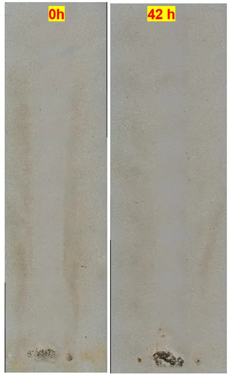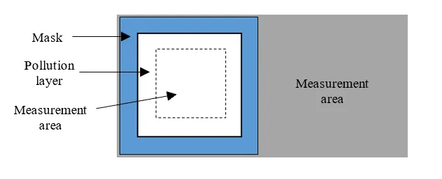 The hydrophobicity transfer test measures the ability of a silicone rubber material to transfer hydrophobic properties to the surface of an artificial pollution layer and was conducted as described in CIGRE TB 442. A pollution layer with thickness of 360μm made of a mixture of quartz sand, water, and isopropyl alcohol was applied while protecting the rest of the specimen surface with a mask. The pollution layer was applied to half the specimen, as in Fig. 1.
