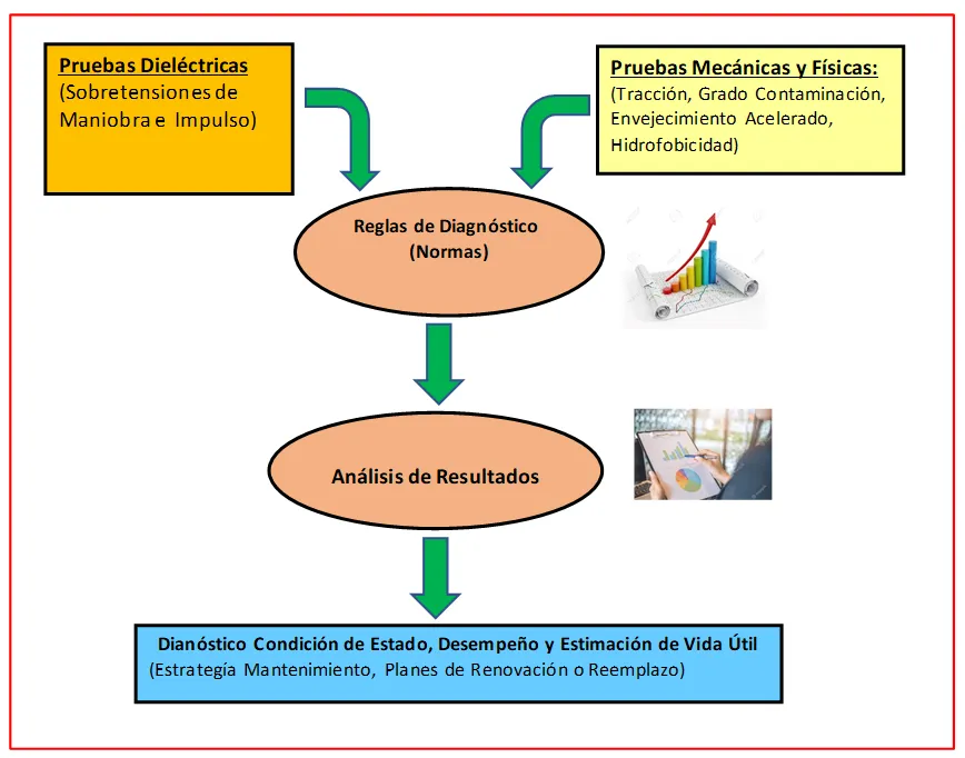 Los resultados de estas pruebas permitirán diagnosticar la condición de estado del material, su desempeño y estimar su vida útil de los aisladores poliméricos de última generación instalados en un retorno de extremada contaminación.