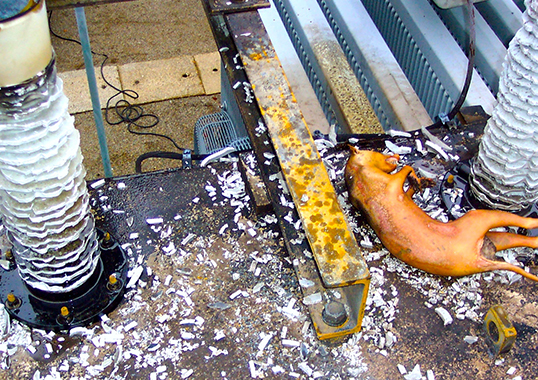 In 2008 and again in 2012 and 2013, for example, contact by squirrels with energized bushings caused serious damage to breakers. Apart from this, birds were found electrocuted alongside potential transformers (PTs). While smaller than local raptors, they nevertheless still had wingspans long enough to bridge the relatively small clearances of this equipment.