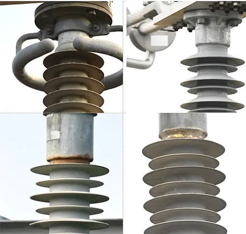 Research was therefore initiated to replace these insulators with porcelain equivalents or to employ other countermeasures in cases where this was not feasible. The project included annual inspection of all composite station post insulators to continually assess status of the installed fleet during the replacement period. The goal was to prevent unexpected outages as well as to help prioritize the exchange program. These inspections revealed premature ageing from excessive electric field as well as quality issues such as poor adhesion between core rod and housing material.