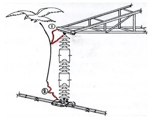 Further anomalies were observed with Generation 3, including flashovers that occurred most during morning hours and which were discovered to be due to bird streamers. Birds leave streaks of droppings when taking off and this can lead to field distortion and risk of flashovers (see Fig. 4). As a countermeasure, it was decided to lengthen insulators from 3.0m to 3.4m. Another change was replacement of wedge type fittings (caps) with press-on (crimped) fittings. Formulation of the silicone material was also improved.